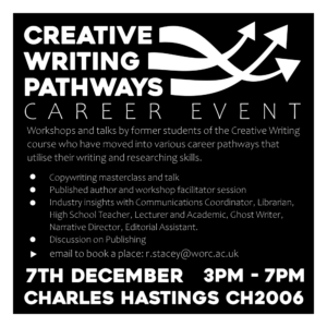 07/12/22 – thank you University of Worcester for inviting me to the Careers Event in The Hive. It was amazing to hear the success stories of recent graduates Lydia Chenhall, Karl D Smith, Chloe Hanks, Cath Darwen and Kayleigh Fletcher. I spoke about workshops using ‘The Objectors’ at Black Pear Press.